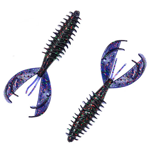 The BassMooch Shooter Craw excels on a Texas Rig when shooting into heavy cover to get sick bites. This 4.3 inch soft body craw features a full ribbed body with hook sleeve and two stuttering swim appendages for creating erratic underwater movement for triggering bites. Scented with a powerful bait attractant, the Shooter Craw not only attracts but it gets the bite to land those monster tournament bass you need to pull out of thick cover.