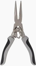 Needle nose pliers are a must-have for anglers, and the Daiwa Needle Nose Pliers step up performance with some key upgrades. 30% thinner and 30% lighter than before, they also feature drilled arm handles and comfortable rubber true-grip handles for maximum comfort and ease of use. Constructed with Rockwell "C" hardness technology and heat treated carbon steel for serious toughness, they also feature a double tempered process cutter. A nickel-finished corrosion-resistant finish rounds out the premium features and provides added durability as well. In a league of their own, the Daiwa Needle Nose Pliers are perfect for the task at hand.