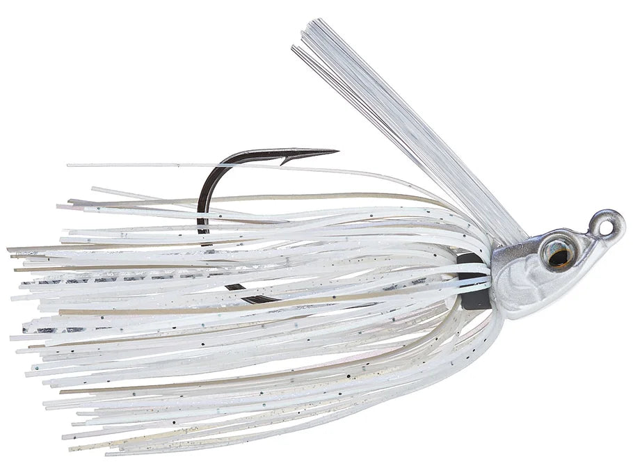 The 6th Sense Divine Swim Jig can be dragged, swam, stroked, or flipped and retrieved through rock, trees, bushes and grass with ease. The semi-flat, keel weighted belly of the head was designed to create a secondary swimming action and also ensure the ability to skip under docks or willows. The wide tapered points of the outside of the head will help deflect cover and also help maintain posture, giving it the ability to lie flat on the bottom (which makes for the perfect bed fishing jig).