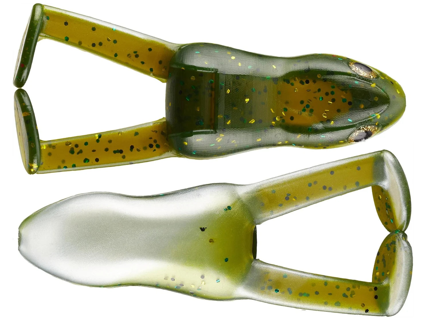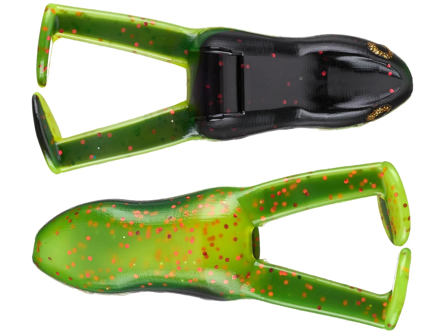 Perfect for pairing with a 4/0 or 5/0 Frog Factory Double Take Hook, the double hook configuration is specially designed to increase your hook-up rate, but the Ribbit frog also excels with your favorite 5/0 extra wide gap single hook. Available in a range of proven fish-catching colors, the Frog Factory Ribbit Frog combines topwater action with a weedless design to reach bass sheltering in those hard-to-fish spots.