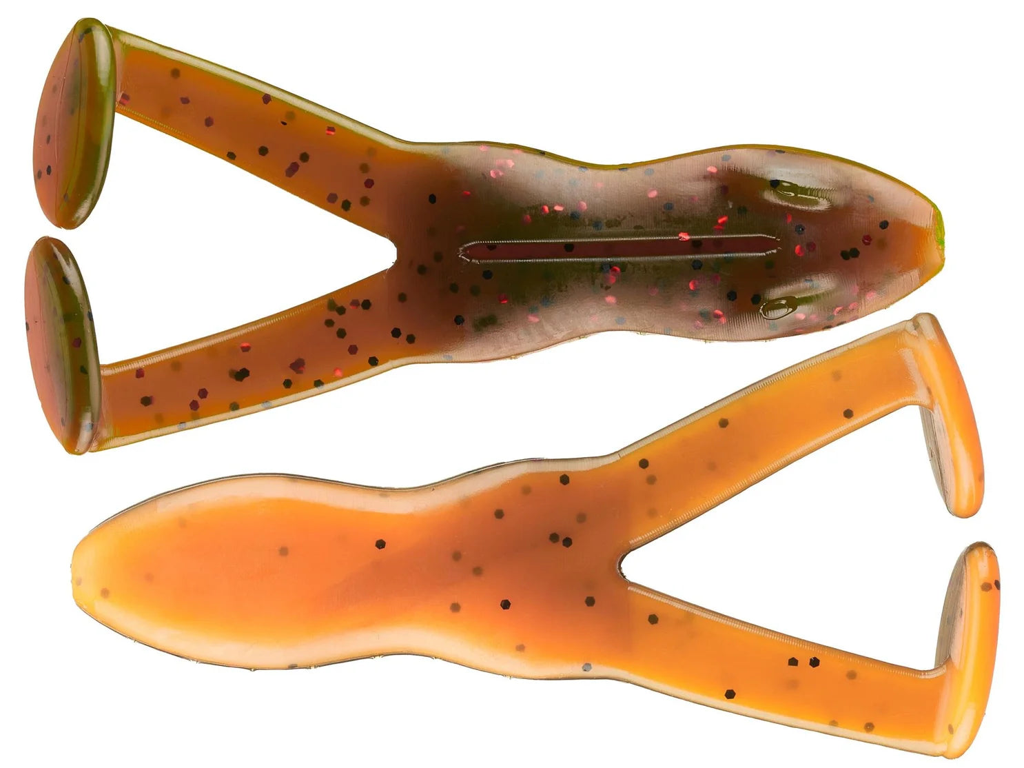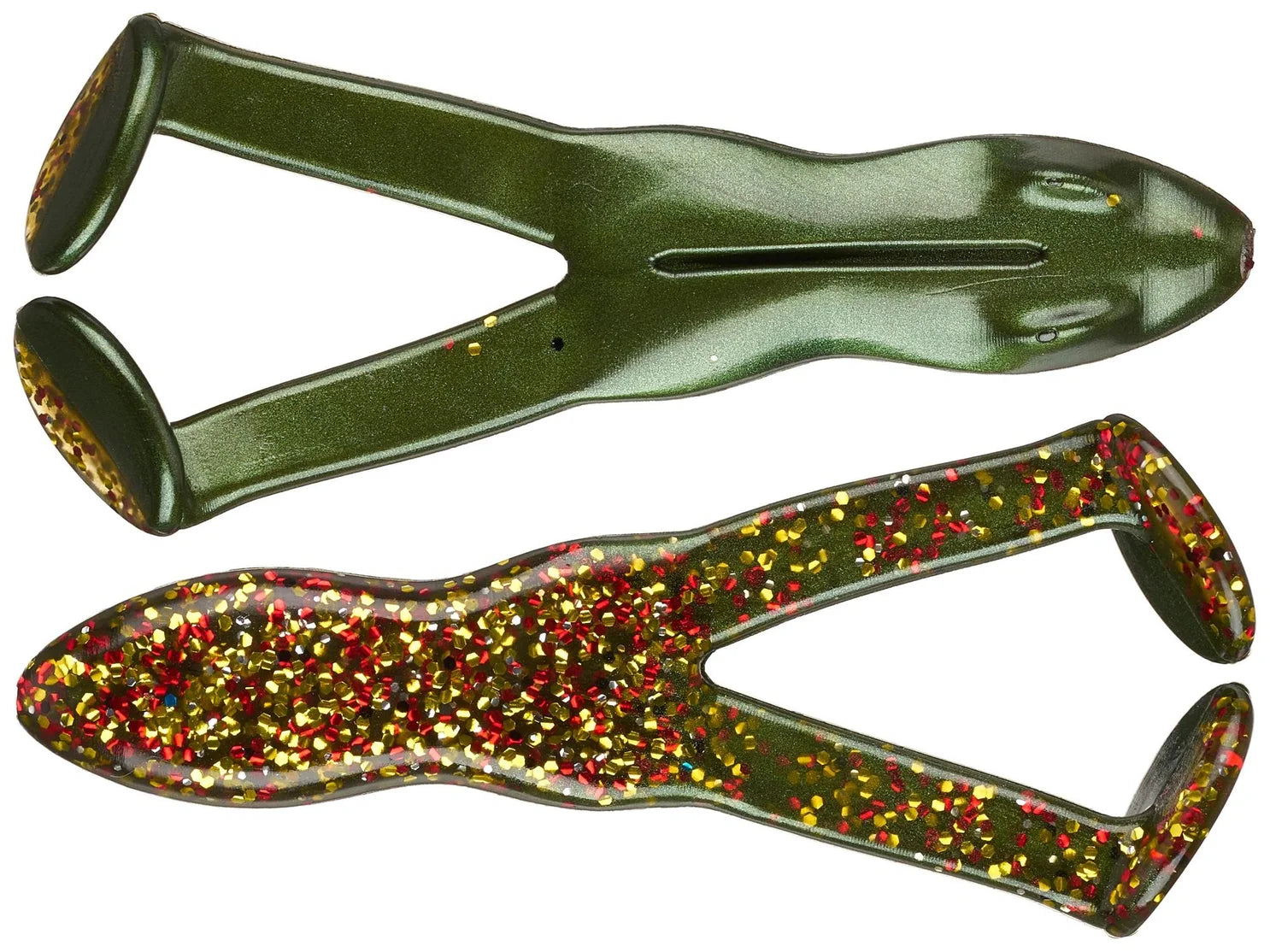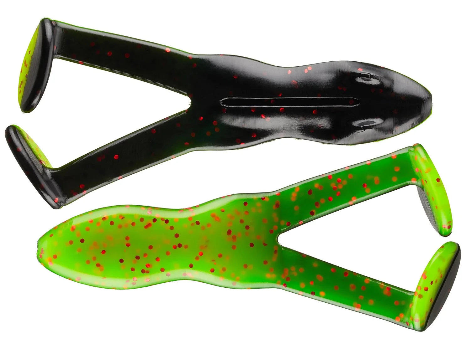 Perfect for pairing with a 4/0 or 5/0 Frog Factory Double Take Hook, the double hook configuration is specially designed to increase your hook-up rate, but the Ribbit frog also excels with your favorite 5/0 extra wide gap single hook. Available in a range of proven fish-catching colors, the Frog Factory Ribbit Frog combines topwater action with a weedless design to reach bass sheltering in those hard-to-fish spots.