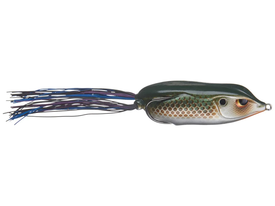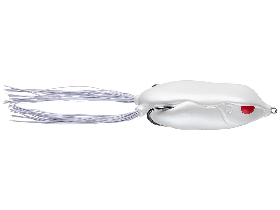 The Spro Bronzeye King Daddy Frog provides a large profile ideal for targeting big bass. It still retains the same design and characteristics that made the original Bronzeye Frog so successful, but now its 30% bigger. Built around a specially designed 6/0 Gamakatsu Superline Double EWG Hook, the Bronzeye King Daddy Frog is up to the task of catching monster bass on braided lines. Using Spro's characteristic design, the razor sharp hooks are pointed away from the frog's body and the super soft plastic allows the frog to collapse down completely when bit - for maximum hook exposure. The larger size of the King Daddy also makes long casts routine and like the original it's perfectly balanced to always land on its belly. Available in a variety of effective colors, the Bronzeye King Daddy is easy to chug through the weeds or walk-the-dog through open water. Spro also made the living rubber legs extra long so you can trim them to your exact specifications and further manipulate the action. Bottom line is, the the Spro Bronzeye King Daddy will handle in the heaviest cover and attract attention from the biggest hawgs.