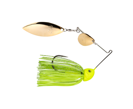 Backed by a razor-sharp and heavy wire hook that won't flex even when using braided fishing line, anglers can depend on positive hooksets with the power to direct fish away from cover. Available in a range of updated Tour Grade color patterns, the Strike King Tour Grade Heavy Cover Spinnerbaits are upgraded with hand-tied silicone skirts that deliver life-like flowing action and ensure long-lasting durability.